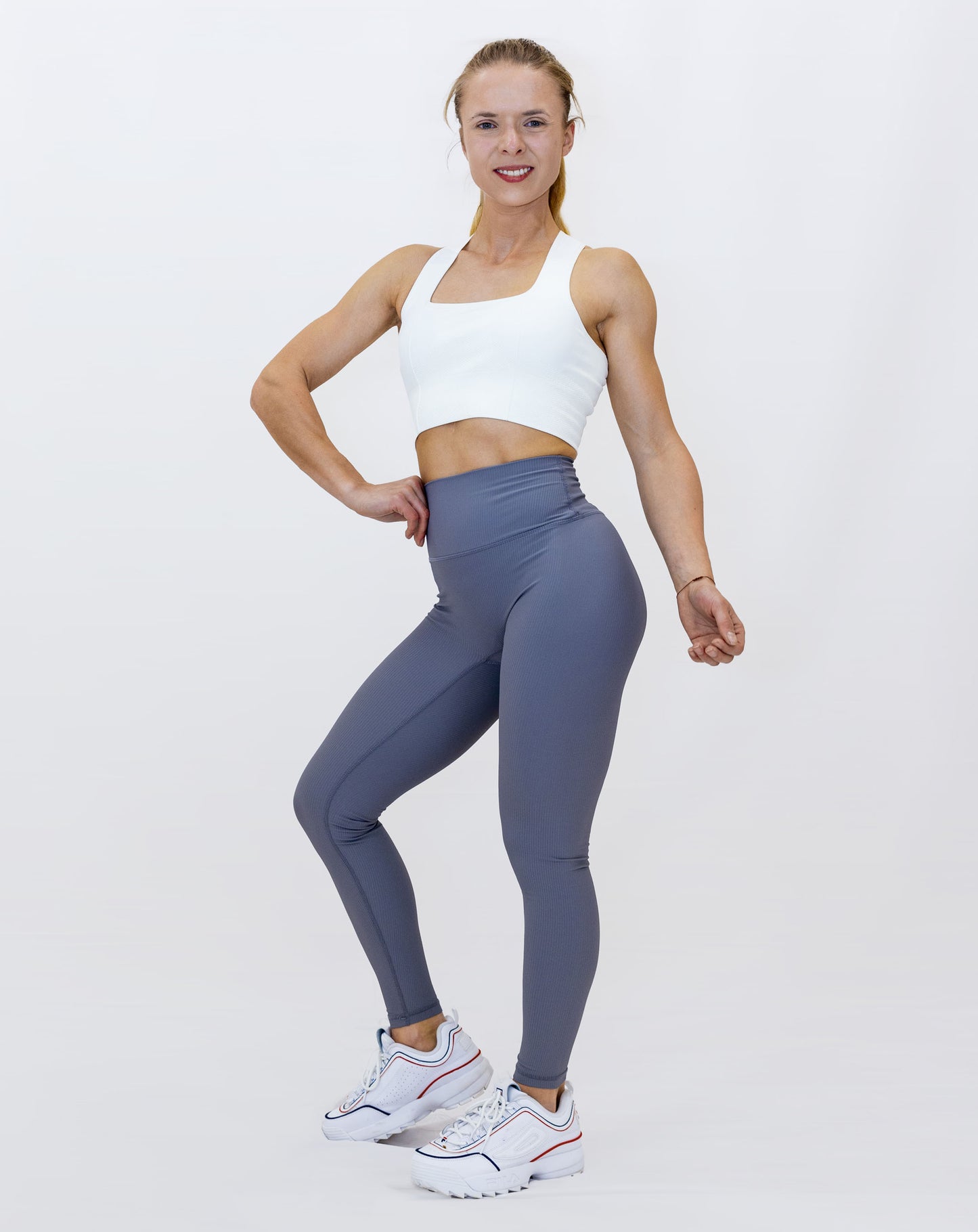 From studio to street, our 7/8 Power Leggings offer versatile style and performance. The high waist provides excellent tummy control, while the ribbed, breathable fabric ensures comfort and quick drying. With four-way stretch and medium compression on the legs, these leggings smooth and lift for a flattering fit. Perfect for any activity, pair them with your favorite tank for an effortlessly chic look.
